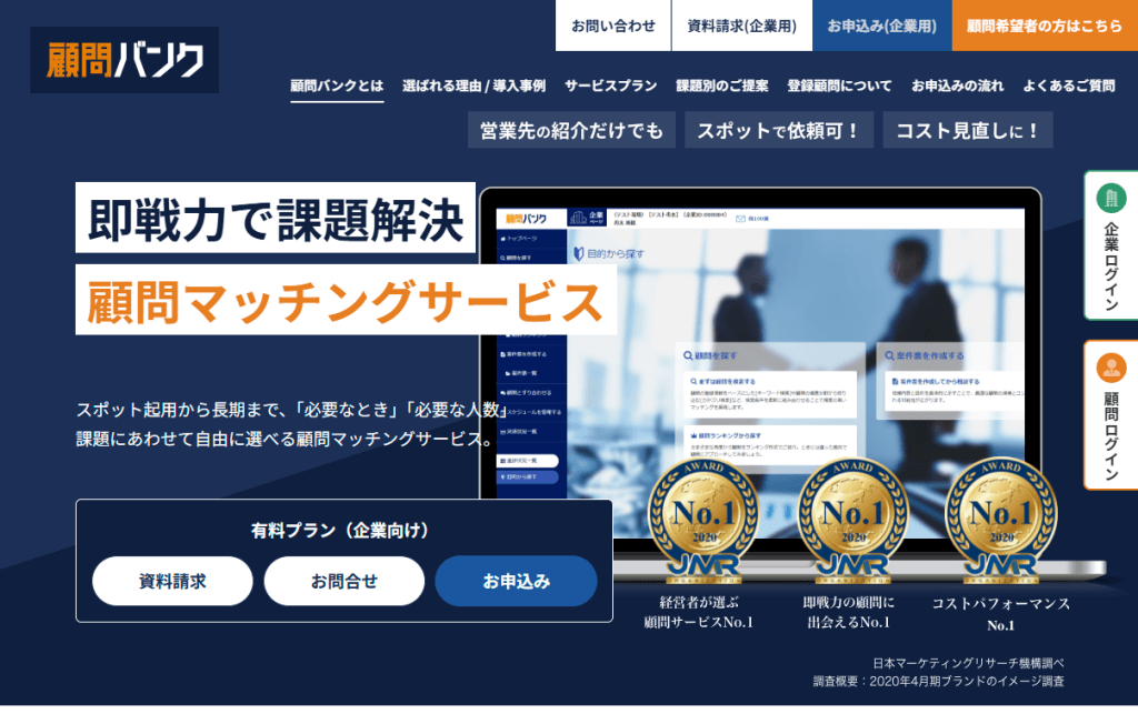 国内最大級の顧問マッチングサービス! 業界のパイオニア!