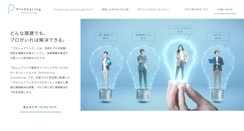 株式会社サーキュレーションの「プロシェアリング」は、一般的な採用市場では出会うことが難しい優秀な人材が登録しています。