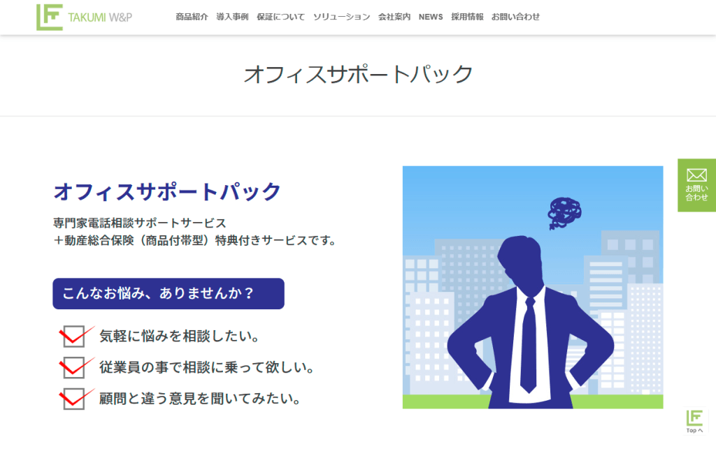 匠ワランティアンドプロテクション株式会社が運営している「オフィスサポートパック」は、専門家電話相談サポートサービスです。