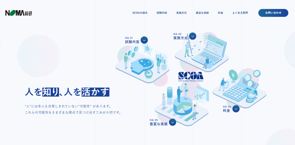 ※参考:NOMA総研.「SCOA総合適性検査 | 採用・昇格・人材・組織開発の日本経営協会総合研究所」.https://www.noma.co.jp/service/assessment/scoa/ ,(参照2025ー11ー10).