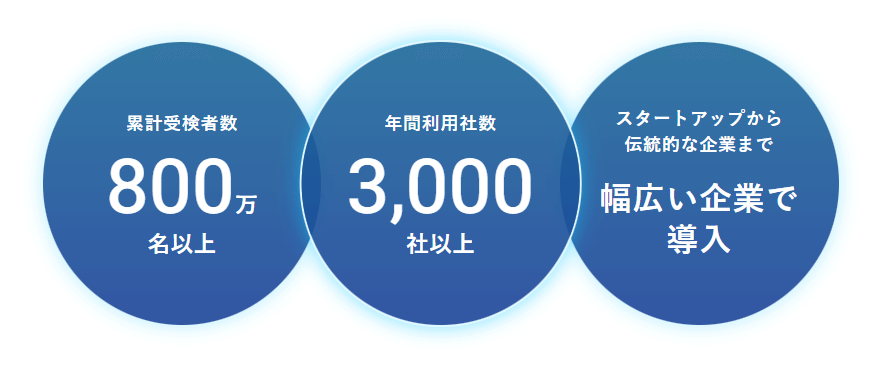 累計受検者数は800万名以上、年間利用企業は3,000社以上!