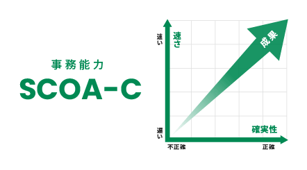 SCOA-Cは、業務の中で求められる処理作業に、素早く正確に対応できるかを測る適性検査です。言語や計算能力を検査する他、間違いを探し出す照合能力や、指示に従って仕分けをする分類能力、与えられた情報を思い出す記憶力などを測定できます。