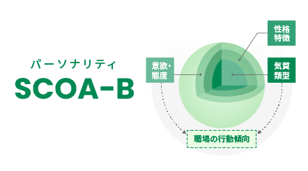 SCOA-Bは、受検者自身の性格や考え方などを測る適性検査です。単なる性格検査ではなく、ストレス傾向まで読み解けます。