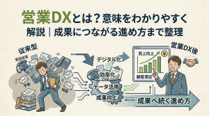 この記事では、営業DXとは何か、なぜ必要なのか、何が変わるのか、進めるときに何を押さえるべきかまでをわかりやすく整理します。