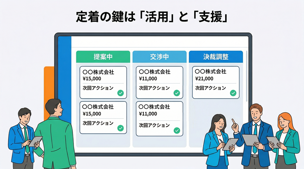 営業の案件管理を定着させるには、現場で使い続けられる仕組みが欠かせません。