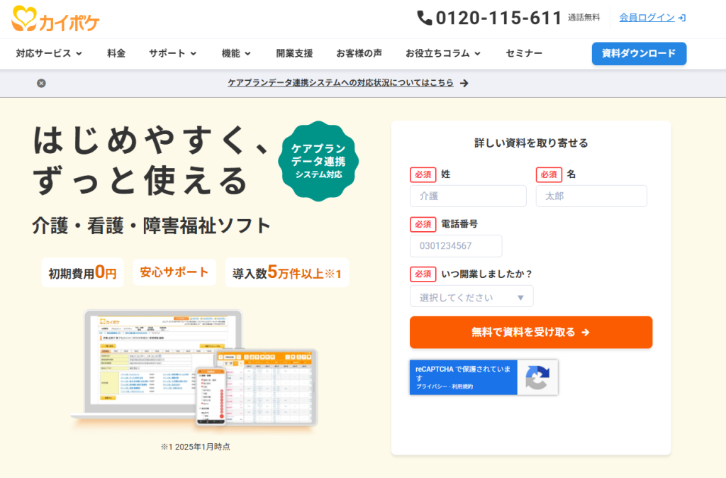 - 計画・記録・請求・分析など、さまざまな介護業務にワンストップで対応
