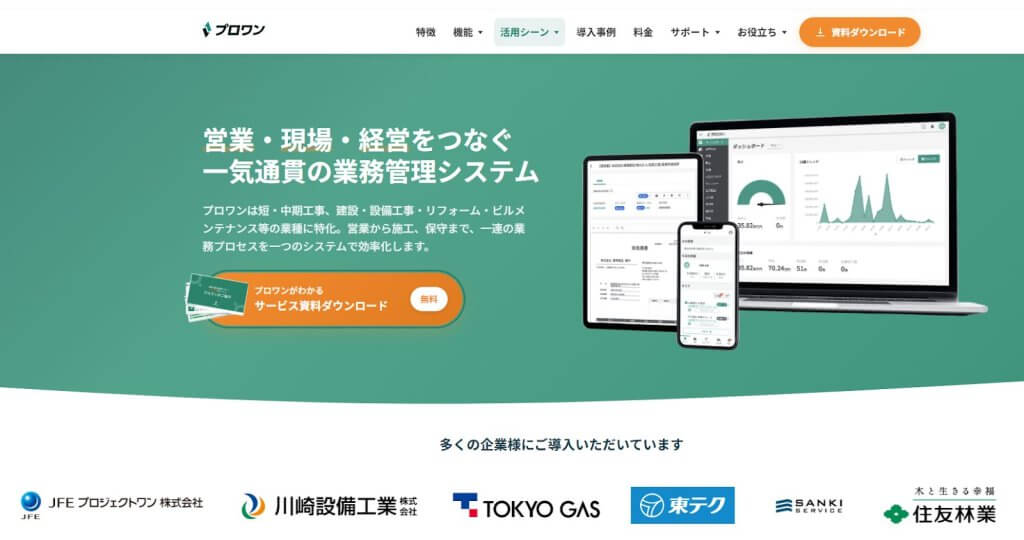 事務作業の工数が30%削減、成約率が15%向上、売り上げが20%向上した実績あり! 現場仕事を効率化する「プロワン」
