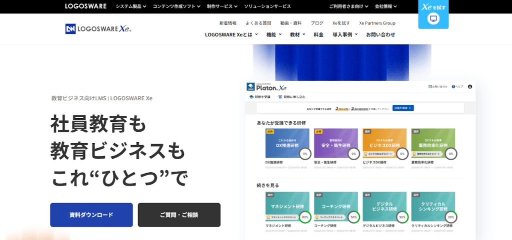 - 特徴:自社教材を登録・配信でき、学習進捗やスキル管理が可能