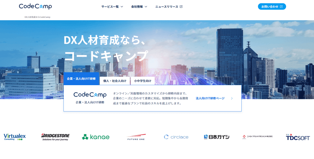 | 研修テーマ | ・ビジネスマナー研修 ・コミュニケーション研修 ・リーダーシップ研修 ・チームビルディング研修 ・マーケティング研修 ・デザイン研修 ・プログラミング研修 ・AI研修 など |
