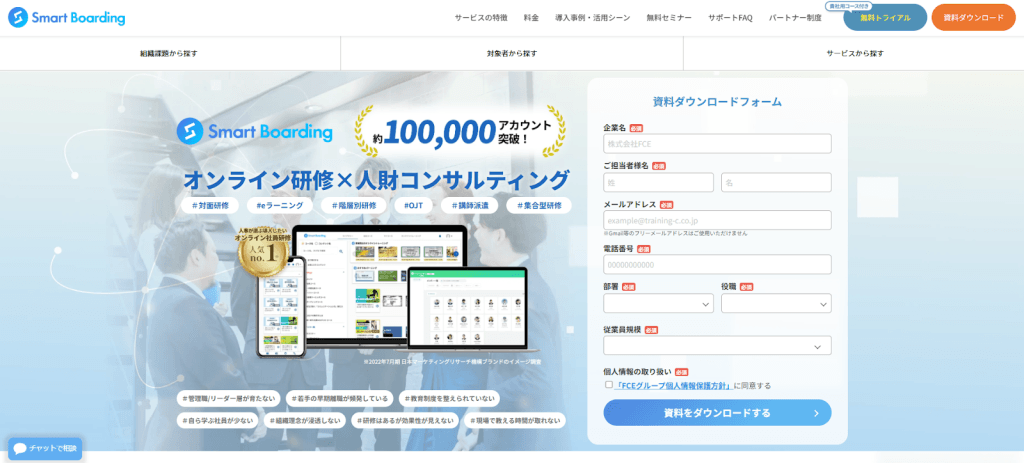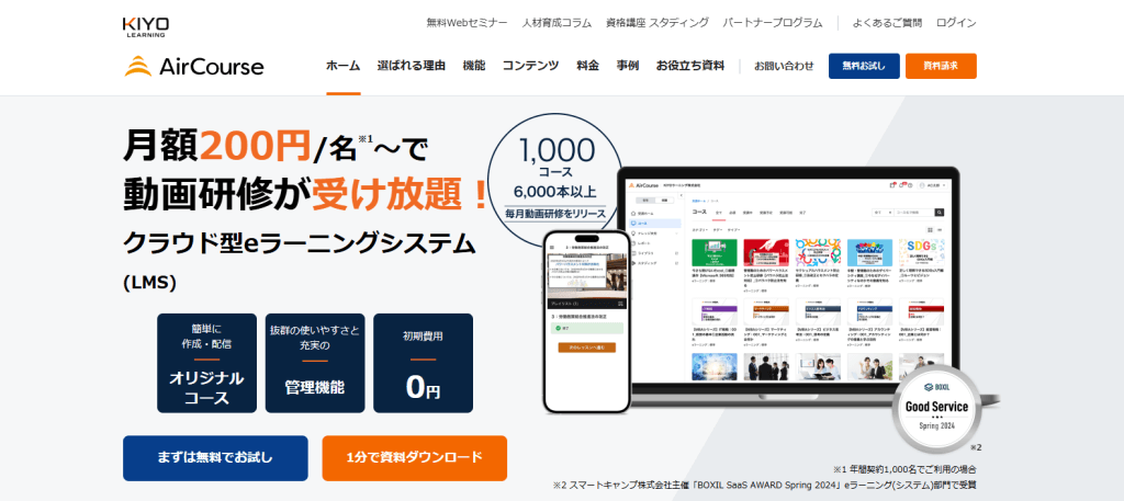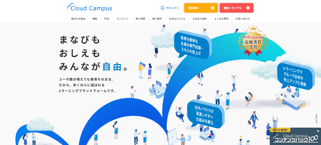 | 費用 | ・初期費用:11万円(税抜) ・月額費用:1,650円/ID(税抜) ※無料トライアルあり(10日間全ての授業を視聴可能) |