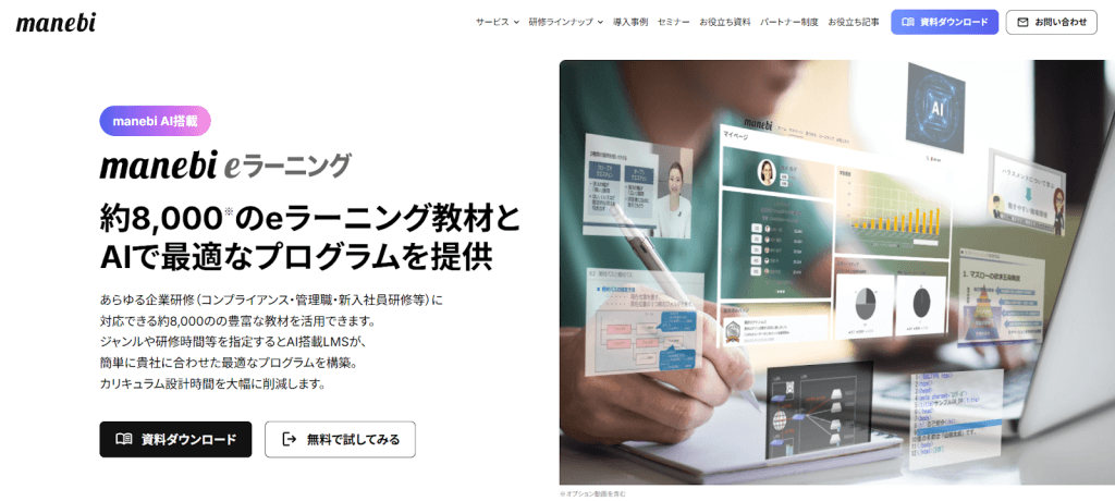 業種や職種に応じた幅広い教材を揃え、基礎から専門スキルまで段階的に学習可能。企業ごとの育成課題に合わせて柔軟に活用できるラインナップが特徴です。