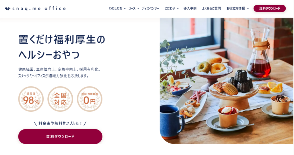 初期費用:0円 月額費用:0円 送料・備品費:0円 商品代金:下記から選択 食べる分だけ都度決済「企業負担ゼロ」パターン 企業と従業員が一部負担する「一部負担」パターン 福利厚生費として企業が一括購入する「買取」パターン |