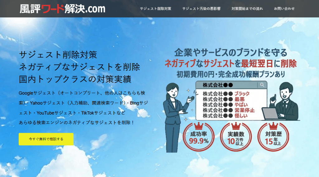 検索エンジン上でユーザーが最初に目にするサジェストや関連キーワードに特化した専門的な対策を提供しています。ネガティブな候補表示はユーザーの不安や誤解につながりやすく、企業のブランド価値を損なう要因となります。特化型サービスとして蓄積されたノウハウにより、精度の高い改善を短期間で実施できる点が大きな強みです。