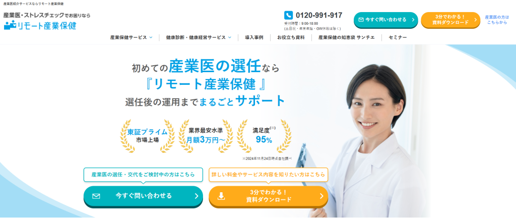 「リモート産業保健」は、株式会社エス・エム・エスが提供する、産業医・保健師サービスのリモート対応型アウトソーシングプランです。人材確保が難しい企業でも、産業保健体制を構築できます。