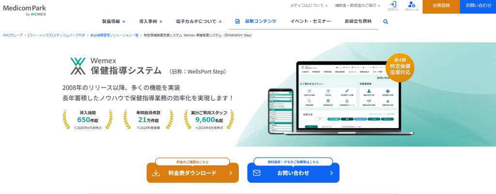 「Wemex保健指導システム」は、インターネット上で歩数や運動データを記録・可視化し、従業員の健康意識を高めるための法人向け健康促進サービスです。企業向けダッシュボードも提供され、イベントやランキング運用も可能です。