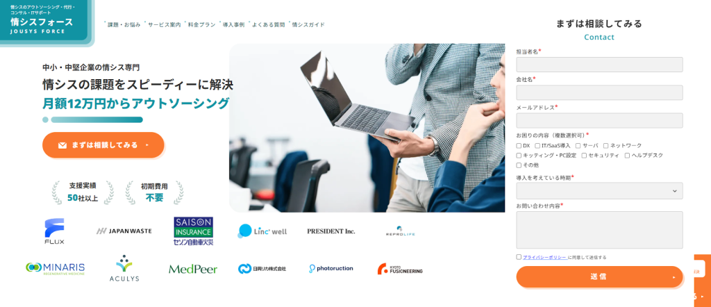 「情シスフォース」は、実務経験豊富なCTO(最高技術責任者)やIT部長クラスのハイスキルな専門家による支援を提供するサービスです。