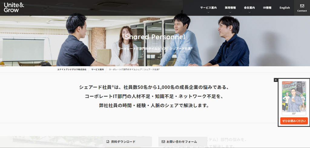 | ユナイトアンドグロウ株式会社 | シェアード社員 |