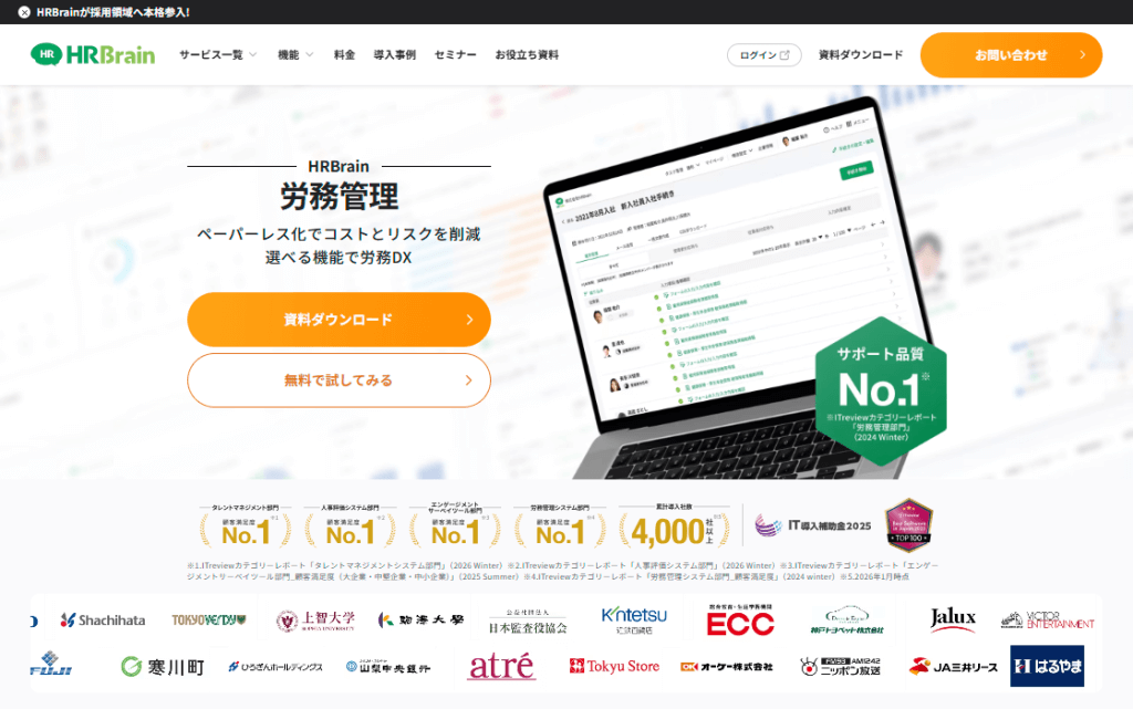 ここからはおすすめの労務管理システムを、10つご紹介します。