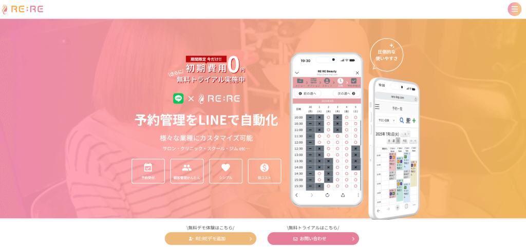 - 初期費用0円・契約期間の縛りなし! LINEの予約受付から決済、顧客管理、集客までを効率化できる「RE:RE」