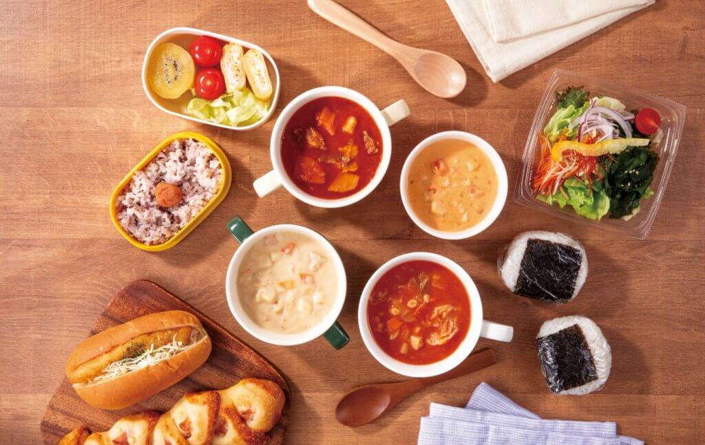 常温保存可能なスープの提供 ・1/3日分の野菜を使ったミネストローネ ・魚介と野菜たっぷりのクラムチャウダー など |