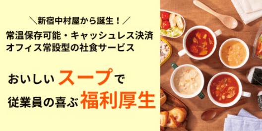 「Office Stand By You」は、1901年創業の老舗食品メーカー・新宿中村屋が手掛けるオフィス常設型の社食サービスです。新宿中村屋は創業以来、純印度式カリーや中華まん、お菓子、レトルト食品といったさまざまな商品を提供しています。そんな新宿中村屋がオフィス常設型の社食サービスとして「Office Stand By You」を2025年から提供開始。素材やおいしさにこだわった本格スープをオフィスでいつでも楽しめます。
