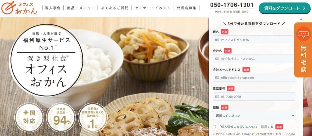 「オフィスおかん」は、管理栄養士が監修した健康的なお惣菜を、1品100円という手頃な価格で提供するサービスです。専用の冷蔵庫には、主菜から副菜までバランスの取れた和食中心のメニューが並び、オフィスにいながら家庭の味のような温かみのある食事を楽しめます。白米の提供サービスもあり、ランチだけでなく、残業時の夕食としても活用できます。従業員の食生活を根本から支えたい企業に最適な福利厚生サービスと言えるでしょう。