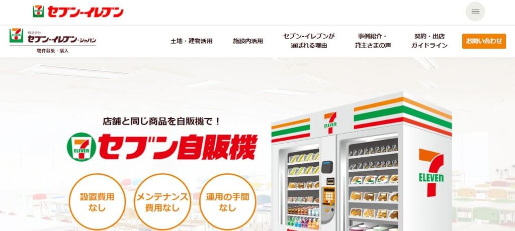 | セブン-イレブン for Workplace | 小型~中型 | おにぎり、パン、セブンプレミアム商品 | サービス利用料は要問合せ | お馴染みのセブン-イレブン商品をオフィスで。 |