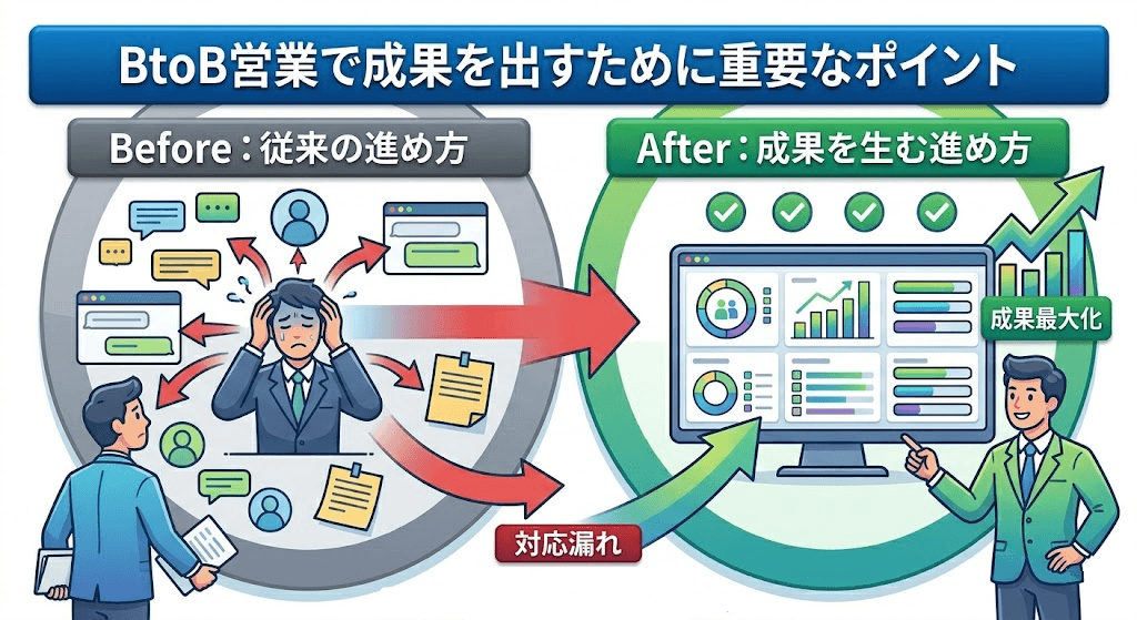 BtoB営業で成果を出すには、売り込みすぎず、放置もしない距離感で継続的に接点を持つことが重要です。この積み重ねが、競合比較の場面でも差になりやすくなります。