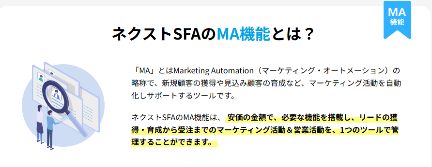 主にマーケティング部門で活用されるツールで、Webサイトのアクセスやメール開封などの行動データをもとに見込み顧客を育成します。