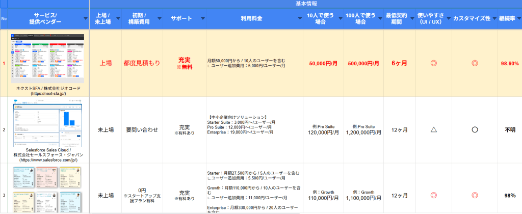 ↑詳細情報は【無料DL】こちらもチェック!>>> SFAツール比較表