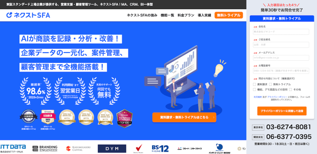- ネクストSFA:使いやすさ×無料サポートで継続率98.6%!現場が動き出す国産SFA