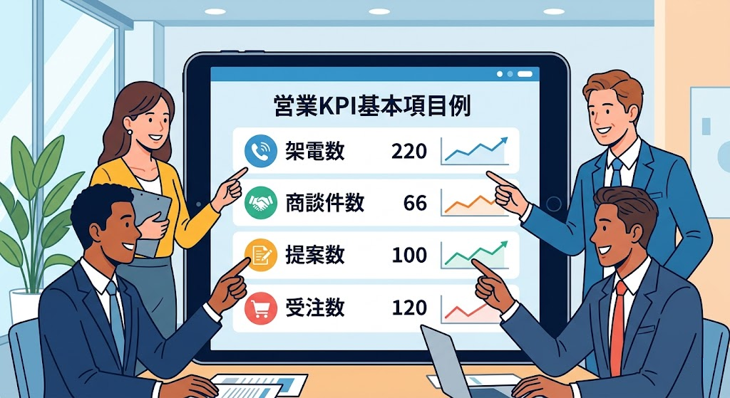 たとえば、架電数、メール送信数、アポイント獲得数、商談数、提案数などは、営業活動の土台を把握しやすい指標です。HubSpot や Salesforce が紹介している営業KPIの例にも、こうした行動に近い指標が含まれています。