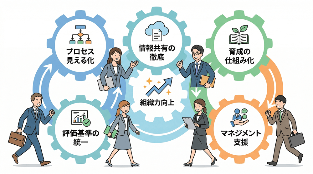 ここが整うと、組織全体の再現性も高まりやすくなります。
