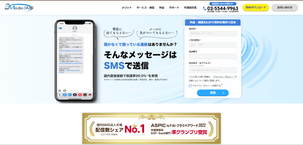 - 業界最安水準の1通6円~! 98%以上の高い到達率のSMS配信サービス「SMSLINK」