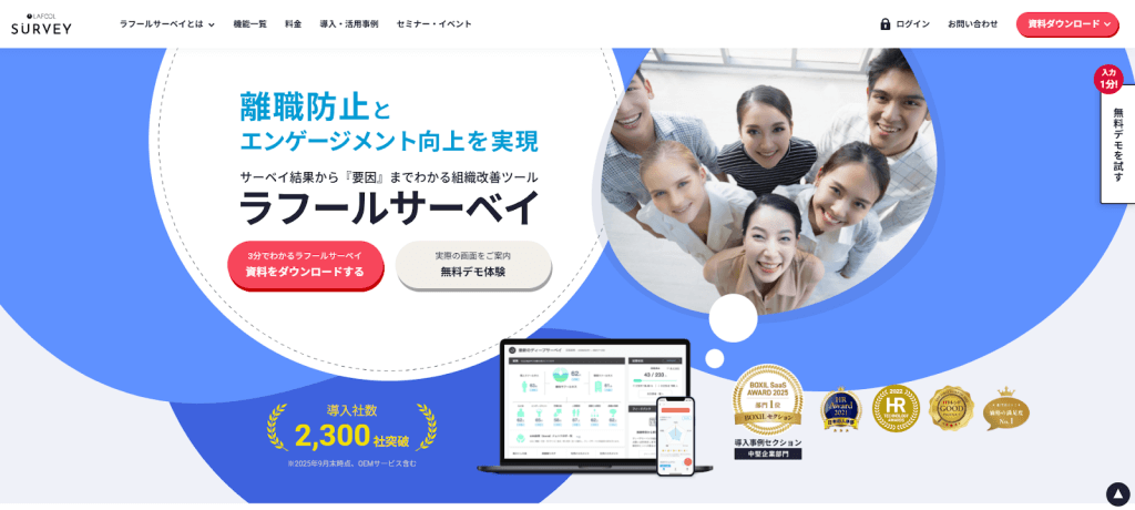 エンゲージメント向上や離職防止など、組織改善まで踏み込みたい企業に適しています。