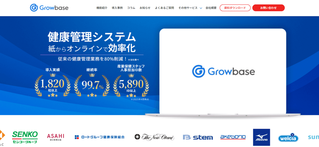 ウェルネス・コミュニケーションズ株式会社が提供する「Growbase」は、企業の健康管理業務の効率化と健康経営を促進するためのクラウド型健康管理システムです。健康データの一元管理により、従来の業務量を約80%削減し、健康経営をサポートします。