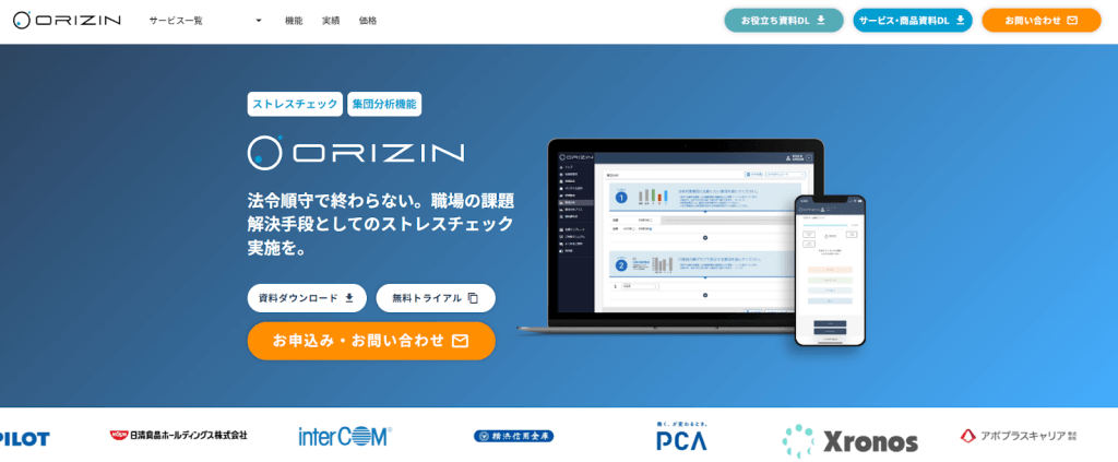 株式会社ドリームホップが提供する「ORIZIN」は「法令遵守で終わらない、職場の課題解決手段としてのストレスチェック実施」を掲げるサービスです。2つのプランや複数のオプションを組み合わせて、企業ごとの課題や状況に合わせた運用を実現できる点が特長です。