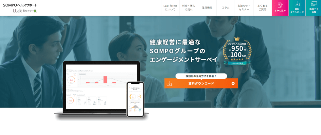 「LLax forest」は、SOMPOヘルスサポート株式会社が提供するエンゲージメントサーベイ・