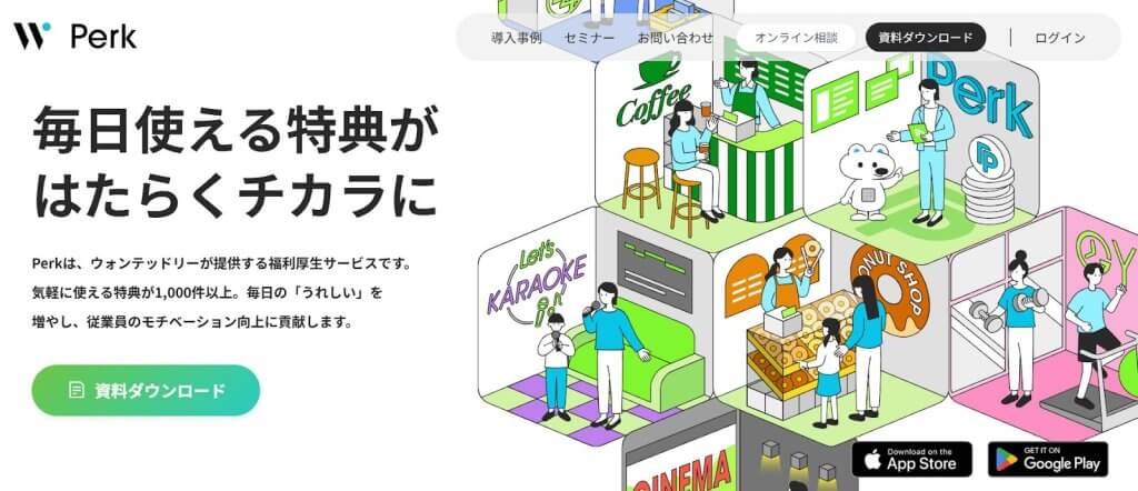 ウォンテッドリー株式会社が提供する「Perk」は、従業員が自らのライフスタイルに合わせて特典を選べる従業員主導型の仕組みを採用しています。旅行・食事・美容・スキルアップなど豊富な提携サービスの中から自由に選択できるため、社員一人ひとりが「自分のための福利厚生」を実感できます。