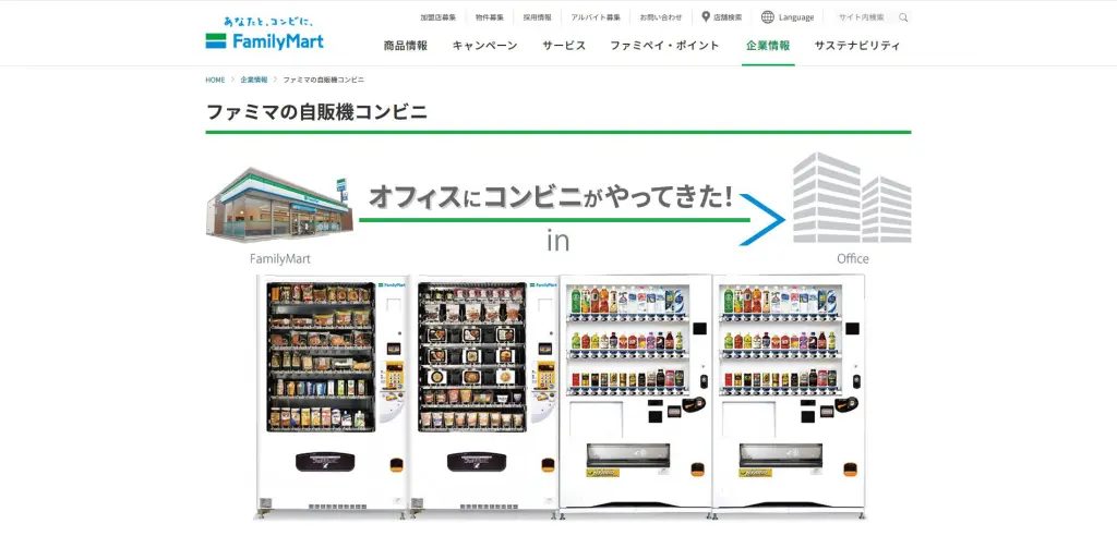 セブンイレブンの商品をオフィス内で販売する専用什器型サービス。コンビニの定番商品をオフィスにいながら購入でき、社員の利便性を大幅に向上。セブンブランドの安心感もあり、導入後の利用率が高いのが特徴です。