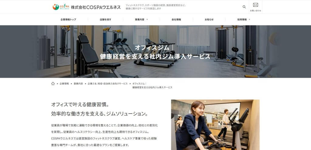オフィス内に設置できるトレーニング機器やヨガ・ストレッチプログラムを提供。専属インストラクターの出張サービスもあり、運動不足を解消できます。健康経営を実現したい企業におすすめで、従業員の集中力アップや離職防止にも効果的です。